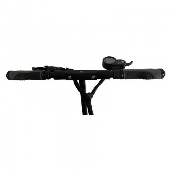 • Adjustable height handlebars that fold for easy storage. The handlebar grips fold as well.